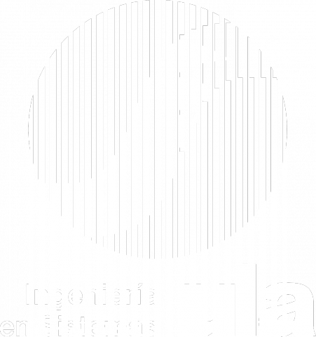 » Imagotipo Escuela de Ingeniería en Sistemas, vertical, en color blanco y azul. Facultad de Ingeniería